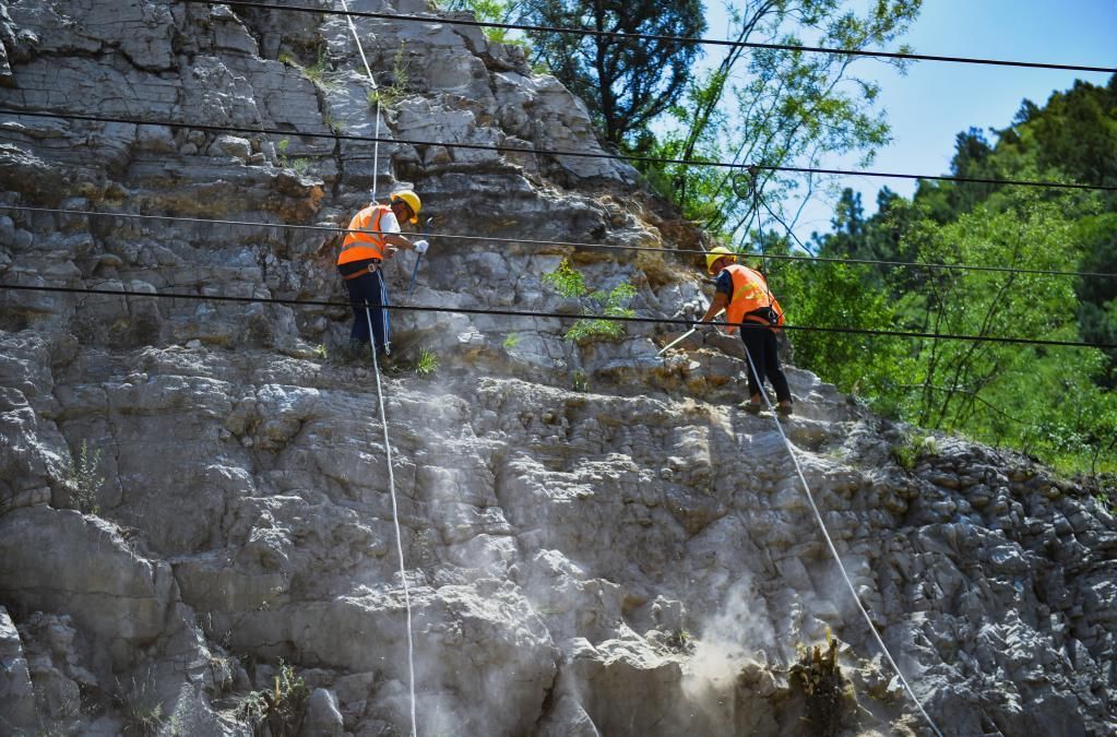 太原工务段职工正在扫山清理危石。(中国铁路太原局集团有限公司供图)