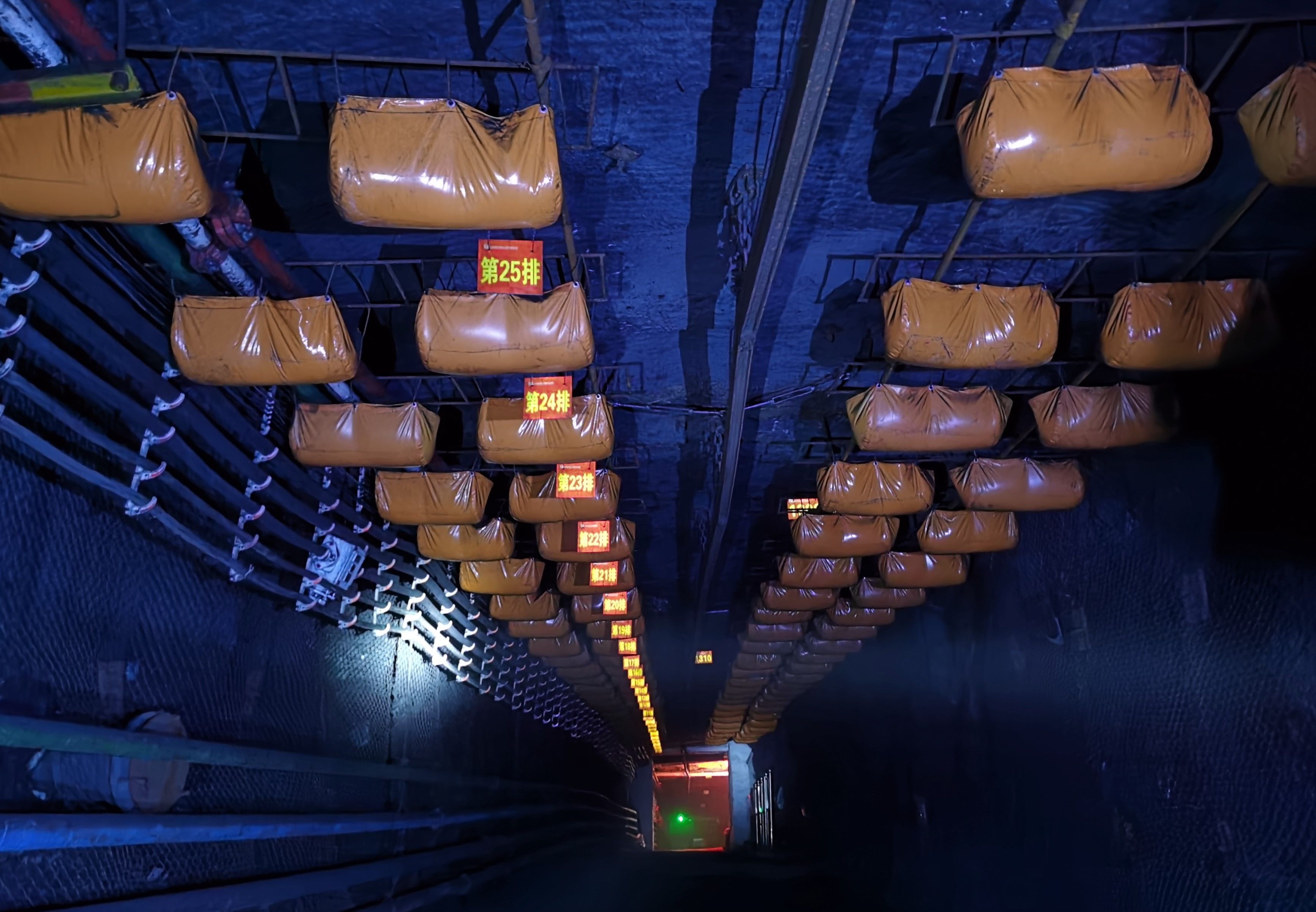 图为井下安装的隔爆水袋。 新华社记者王皓 摄